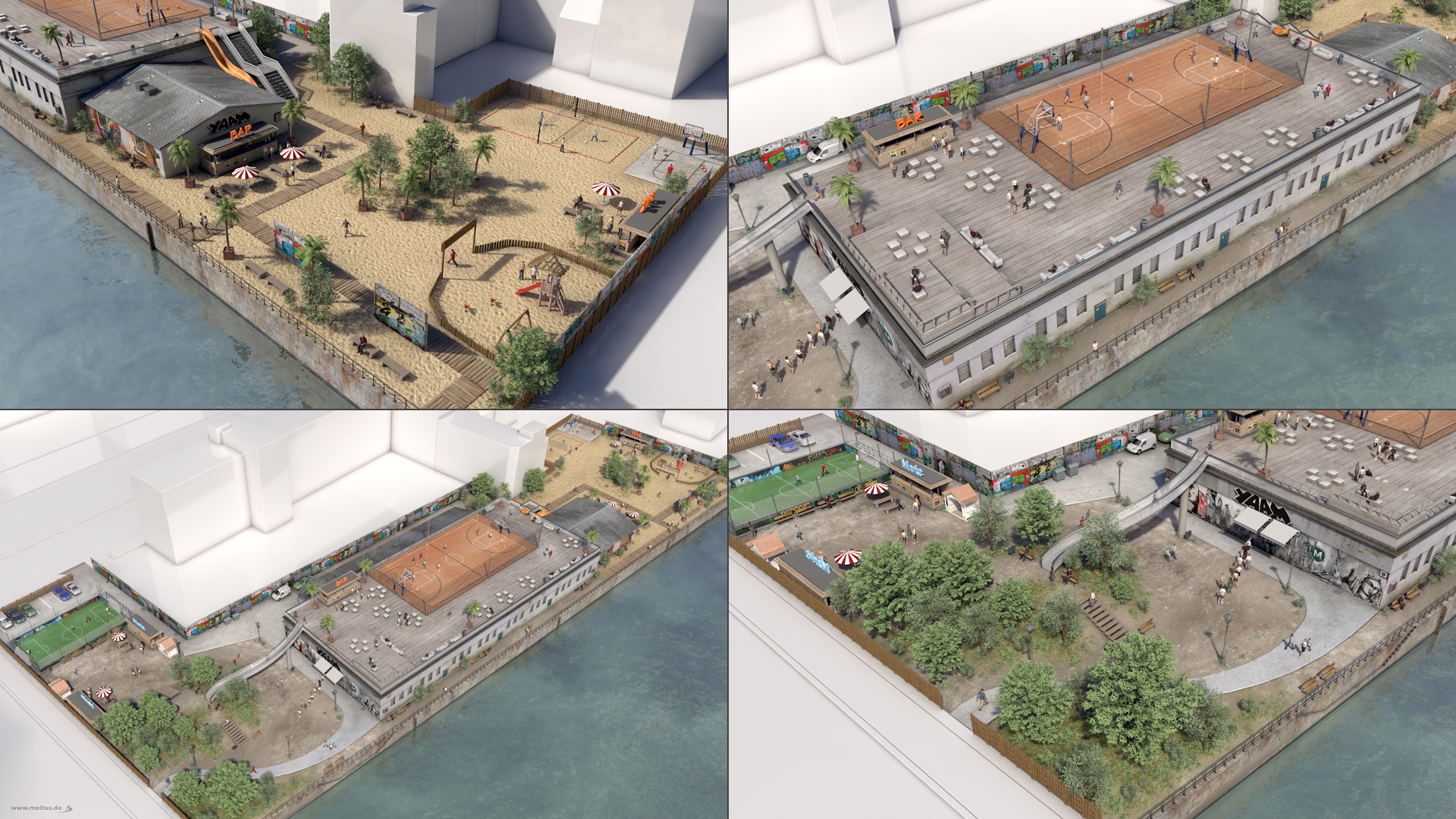 3D Architektur Visualisierung: Yaam - Visualisierung Yaam-Gelände, Planungsentwurf.