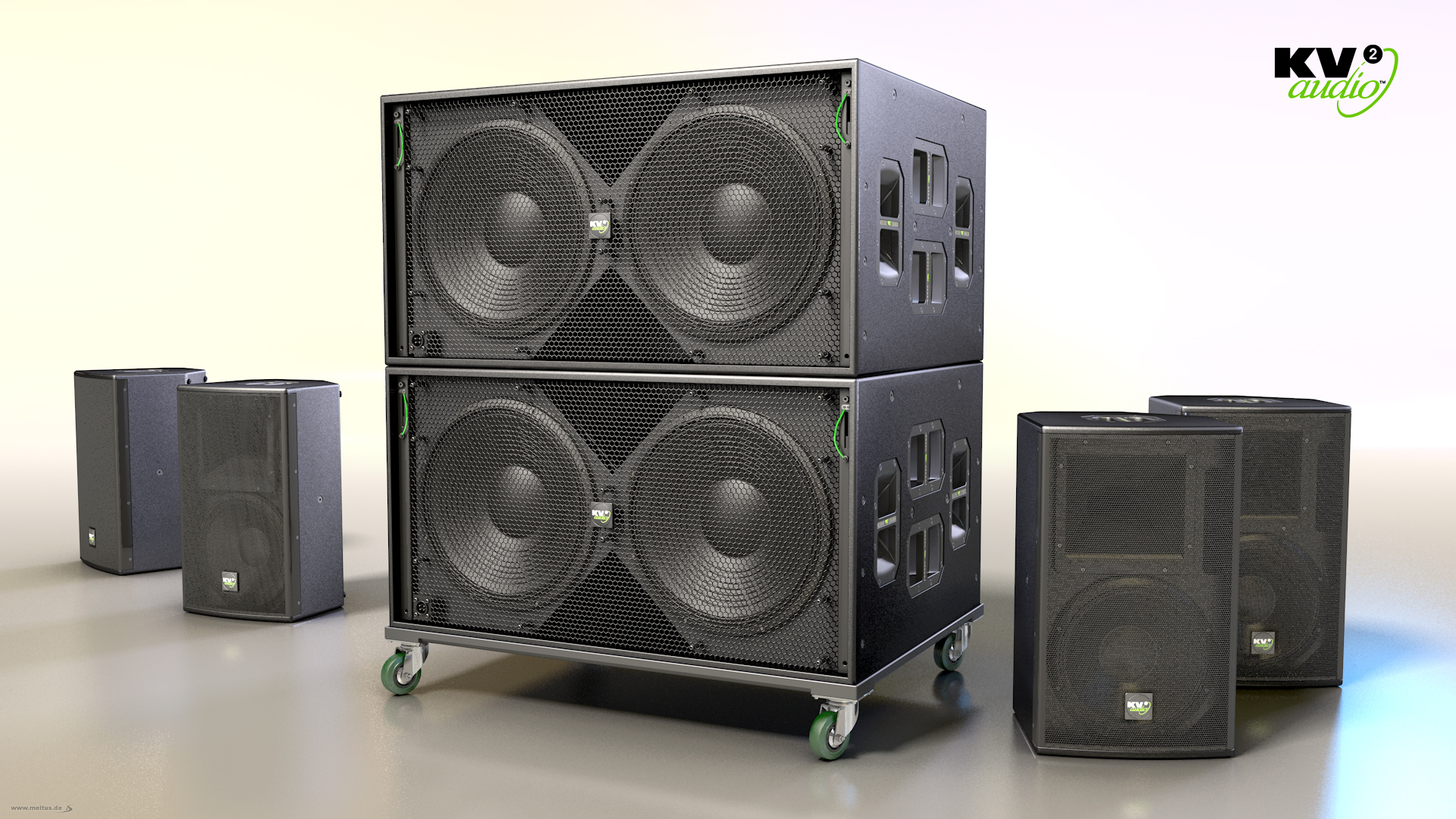 3D Produktvisualisierung: Soundsystem KV2 Audio - 3D Visualisierungen eines KV2 Audio Soundsystems bestehend aus dem VHD2.18J und dem ESD12.