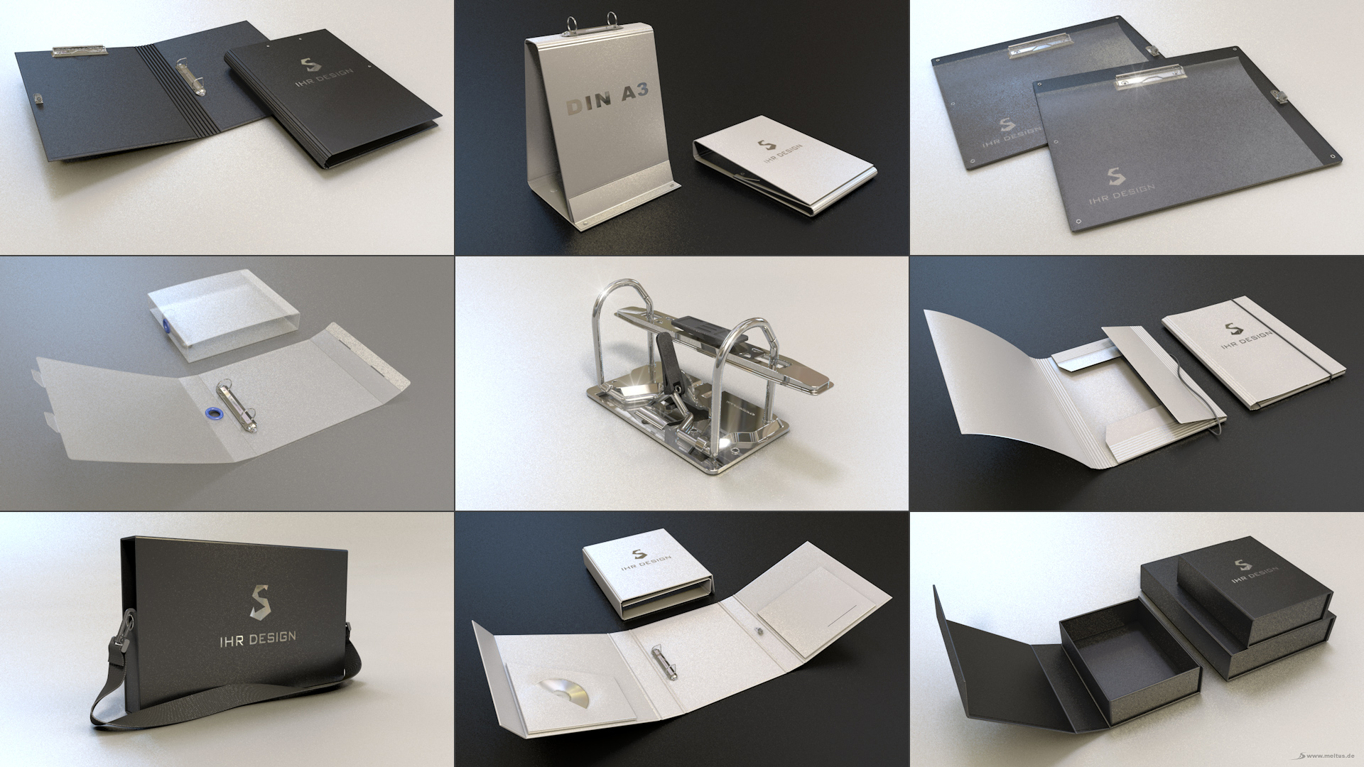 Tags: 3D, Visualisierung, Produktvisualisierung, Design, Industriedesign, Produktdesign, Rendering, Klappschachtel, Verpackungen, Officeprodukte, Ringordner, Schlender