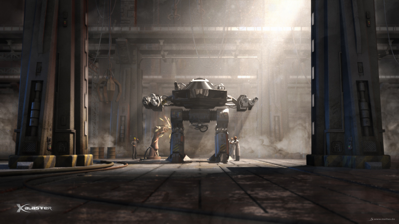 Hangar-Szene aus dem Werbevideo zum Spiel XBlaster. XBlaster war ein Massively-Multiplayer-Online-Game, welches von eLOFD entwickelt und von BigPoint herausgegeben wurde.